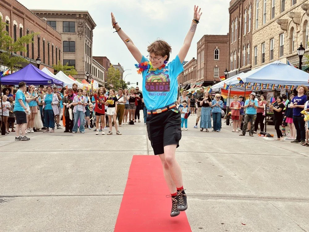 On June 7, more than 1,300 people gathered in downtown Red Wing for the third annual Pride celebration. This event was coordinated by ASPIRE (Authentic Student Pride through Individuality, Respect, and Education), a program of RiseUp Partnership that strives to create supportive connections and safe communities for 2SLGBTQIA+ youth and allies.